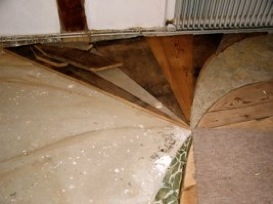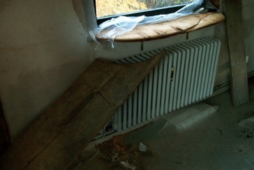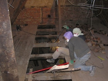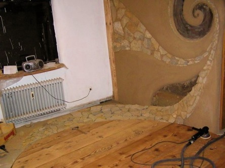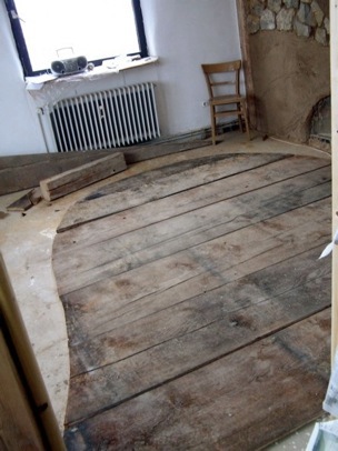Ursprünglich war geplant, den gesamten Boden des Wohnzimmers mit den Bohlen zu belegen, aber viele waren so morsch, daß sie nicht mehr als Bodenbelag taugten.